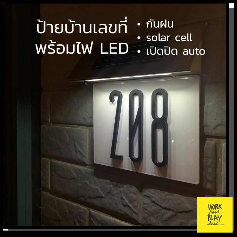 ป้ายบ้านเลขที่ LED พลังงานแสงอาทิตย์ solar cell กันฝน