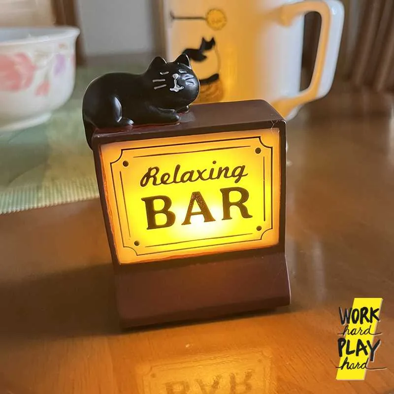 WHPH Shop น้องแมว Relaxing Bar ของตกแต่งร้านกาแฟ บาร์ เปิดไฟได้ ของขวัญปัจฉิม คุณภาพงานส่งออก