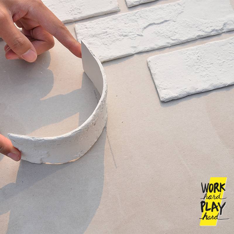 WHPH shop แผ่นติดผนัง 3D ลายอิฐ ดัดโค้งได้ วัสดุ MCM สไตล์ loft mid century modern ติดเองได้